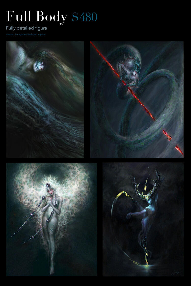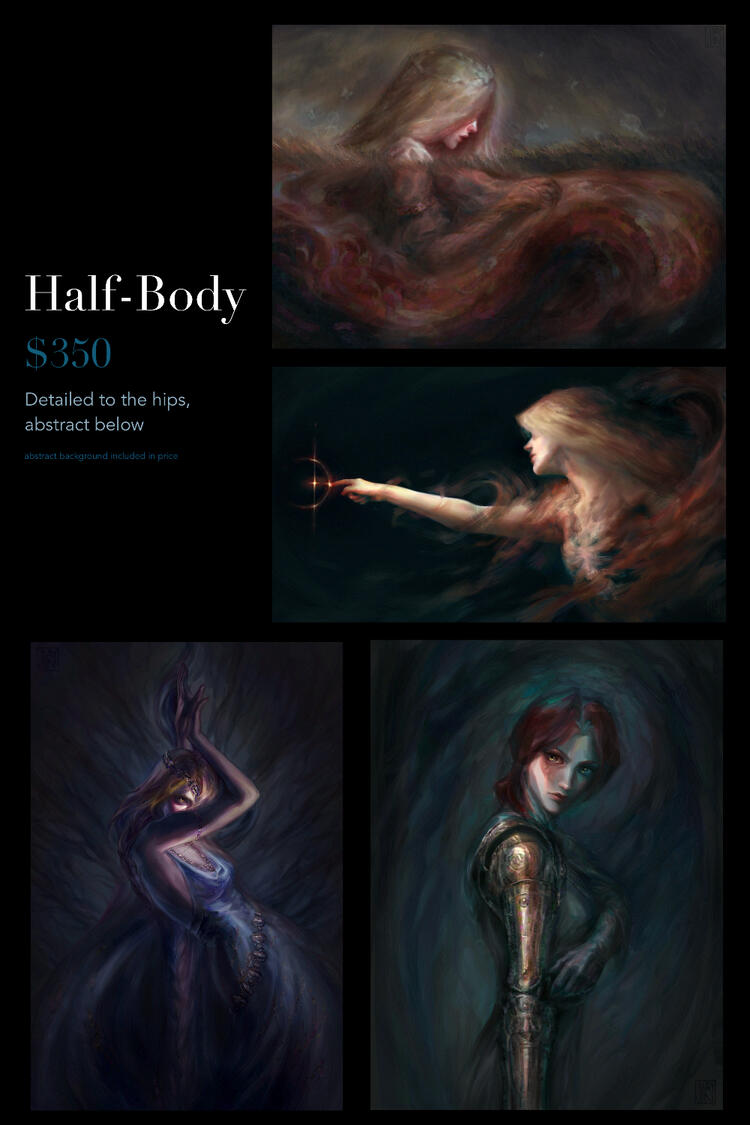 - Type of Commission (ex. colored or black and white, bust shot, waist up, or full body)